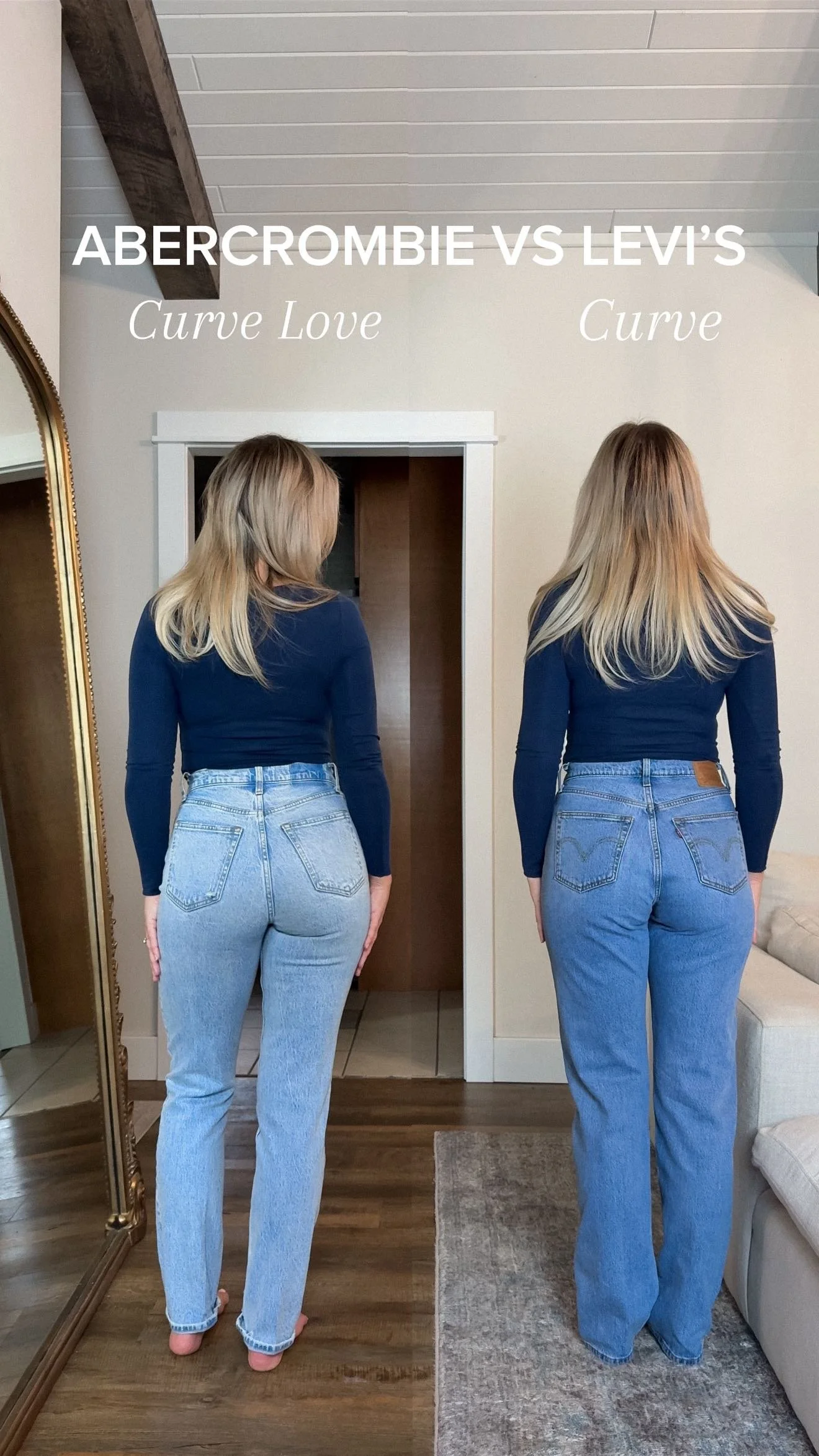A side by side look at Abercrombie Curve Love versus Levi’s Curve. I tested both and the differences are bigger than you’d think. One is more sculpting and cinched, the other gives that classic vintage denim feel. Here’s how each pair fits, feels, and who they’re best for.
